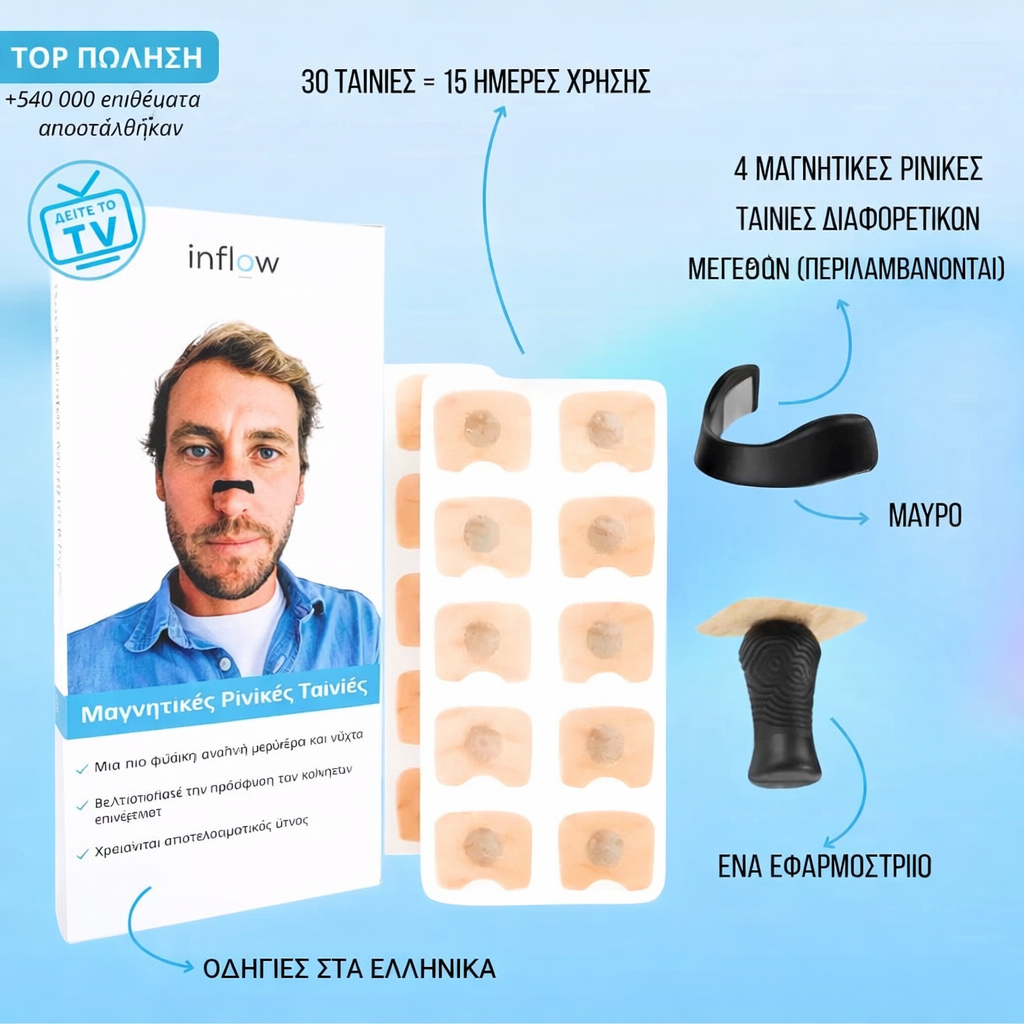 Η μαγνητική ρινική ταινία βοηθά στο άνοιγμα των αεραγωγών μέσω της μύτης, ενώ η στοματική ταινία ενθαρρύνει τη ρινική αναπνοή διατηρώντας το στόμα κλειστό κατά τη διάρκεια του ύπνου.